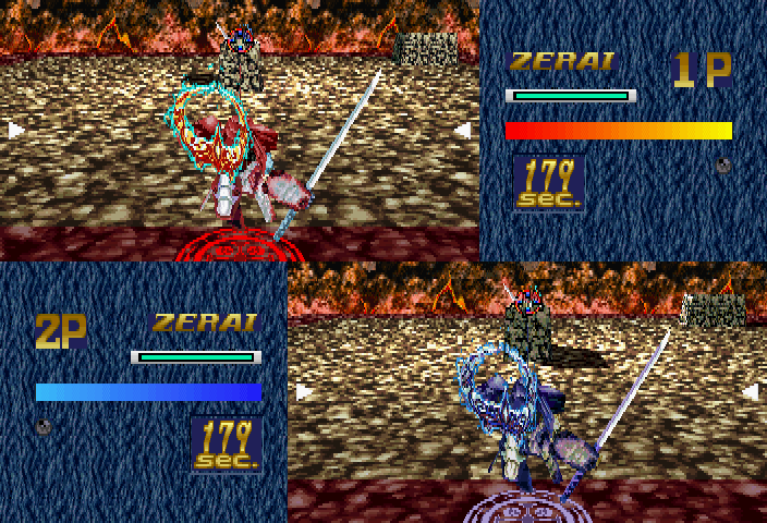 Koutetsu Reiiki: Steeldom (also known as just "Steeldom") is a third-person arena-based action game and a follow-up to Reverthion by the same developers. It plays very similarly to Sega's Virtual On, and includes eight playable characters each with their own unique moveset and abilities. There is a single-player campaign with unique endings for each character, as well as a 2-player split screen versus mode; the Saturn version adds system link support for two-player matches between two consoles.