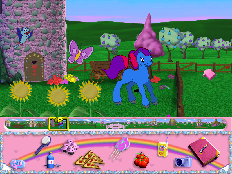 Raise and care for your own Little Pony. Gameplay is divided between the farm, where you care for your pony, and Pony Village, where you can play games. Along the way, you can teach her to jump fences, play games with other Ponies, and eventually cross the rainbow to Ponyland. But don't let her rainbow fade away!