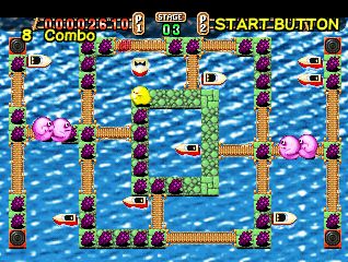 Bomb Boat is an action puzzle game in which players control the character to eat up all the fruits in order to finish the maze. Beware of the monster that goes after you! Bomb out the bridge to block its way! Enjoy this breath-taking Bomb Boat!